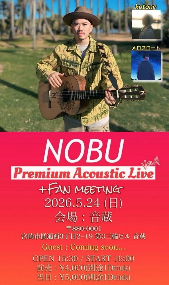 「NOBU Premium Acoustic Live vol.4」出演決定!