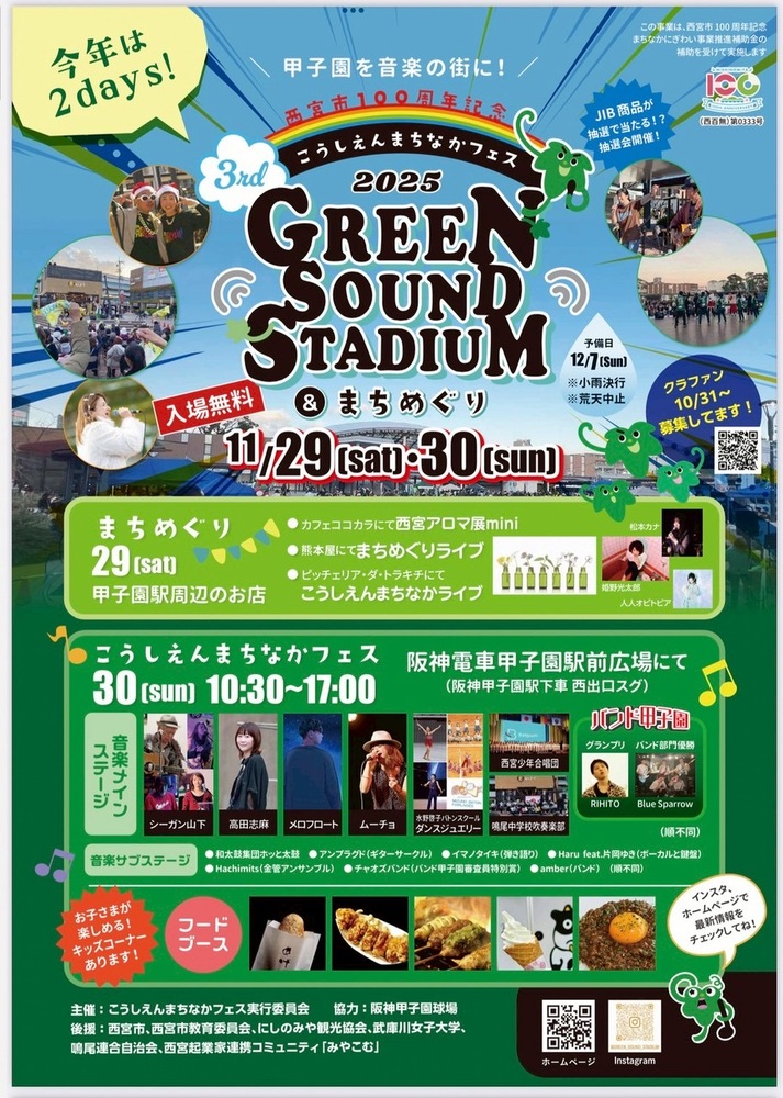 【兵庫】「Green sound stadium 2025」出演決定! スケジュール 2025/11/30(日) 10:30 - 「Green sound stadium 2025」 メロフロート出演決定! 日程:2025年11月30日(日) 時間:OPEN 10:30 / START 17:00 メロフロート出演 15:05〜予定 会場:阪神甲子園駅前広場 (阪神甲子園駅 西出口スグ) 料金:観覧無料 URLをコピーする 報告する